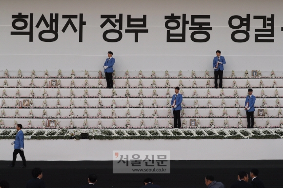 “절대 잊지 않겠습니다.”세월호 참사 4주년 추모 행사인 정부 합동 영결·추도식이 16일 오후 3시 경기 안산시 화랑유원지 내 합동분향소 앞에서 열렸다.